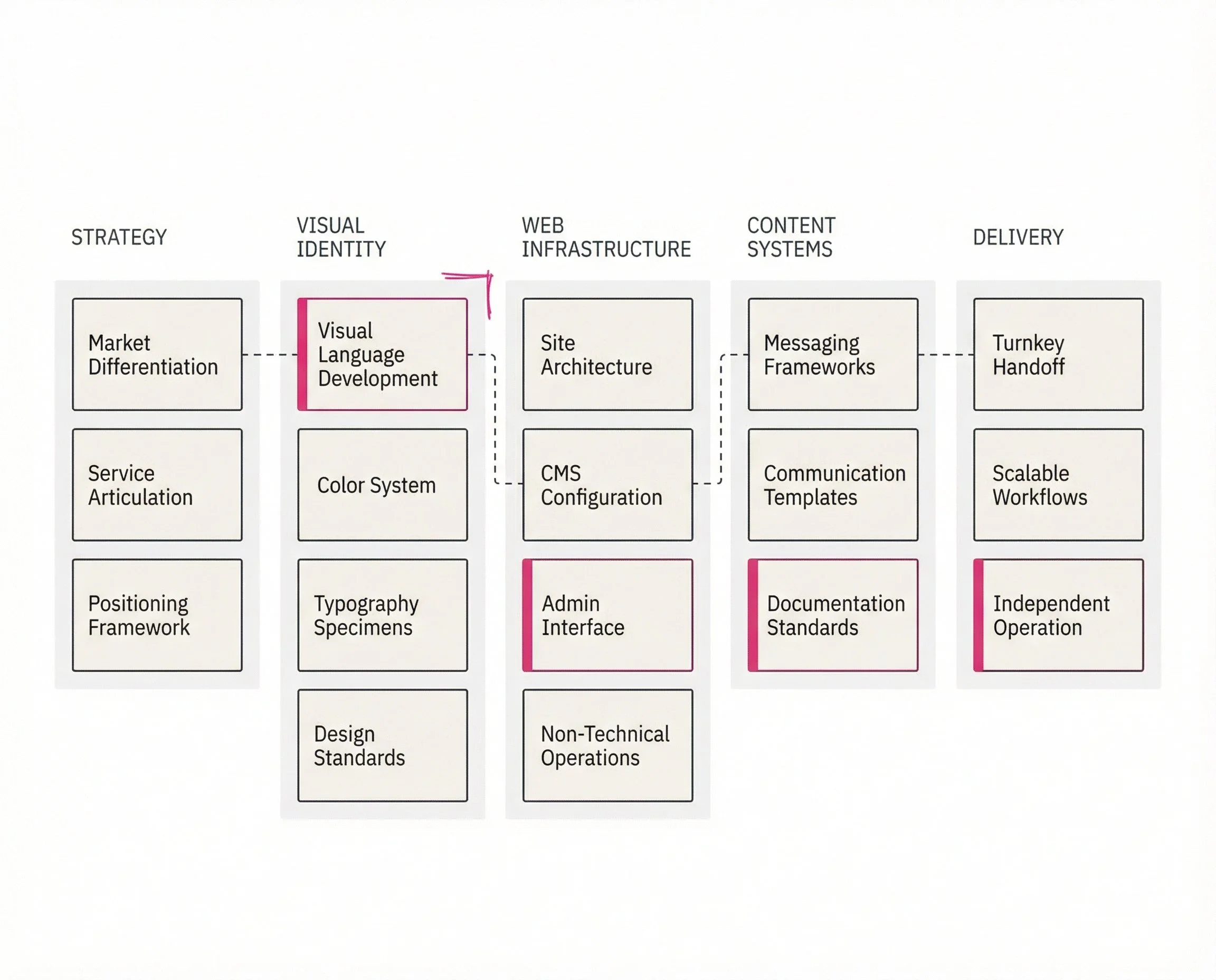 From founding vision to operation: strategy, identity, and infrastructure, all at once.